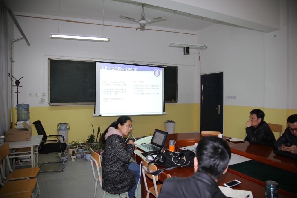 之后,她就“区块链”技术做了重点介绍。汇报结束后,大家对“区块链”技术做了激烈讨论,各位老师提出各种问题,李博士都耐心细致的回答。