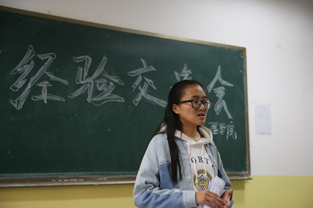 首先国家奖学金获得者1902班刘巧丽上台演讲。刘巧丽从大学四年如何学习这方面与同学们分享了她自己的学习方法,她指出,理解概念是基础,笔记要记重点,摆正心态尤为重要,在平时学习中同学们应该养成良好的生活学习习惯,培养自己表达能力以及坚信自己。2003班连丽娜认为学习本专业要确定好自己的主攻方向,她以自身学习数学分析课程为例,来讲述课前预习,带着问题学习和温及时复习对学习的影响。2003班席苗苗则针对高等代数与解析几何学科对大一学生做出经验传授。1902班李小鹏在学习方面提出课后作业的巩固和考试技巧的重要性。1902班雷霞与听众共同探讨了课程学习的相关经验。1901班郭璐主要针对英语方面给大家介绍自己的秘诀经验:看美剧,日常背诵,手机游戏的英文注释以及英语课外大赛的参与都是靠近英语的阶梯。