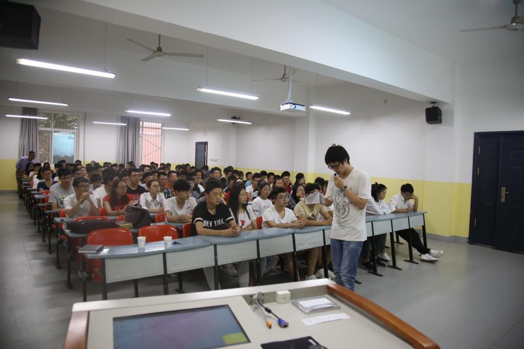报告会开始,曹建波老师简单介绍来自阎良校区的学生代表,能源与建筑学院的考研学生刘毅。正在紧张备考的学长向同学们分享了自己的备考“秘籍”,对同学们的困惑进行了详细的解答。使同学们对于考研这件事情有了更加深入的认识,同时掌握了一定的思路和方法。