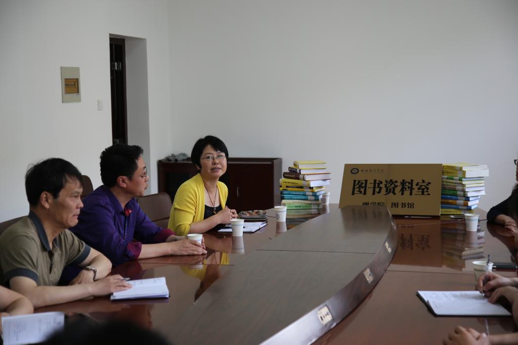 之后,曹校长做了重要讲话,他强调,升本后,beat365面临转型升级,图书馆建设及图书资料建设也向着本科扎实推进,图书资料室建设是学校在本科建设的必经之路。就beat365英国官方网站图书资料室建设,他提出了几点希冀:第一,资料室建设首先要保证一定数量,希望beat365英国官方网站图书资料室能不断添置更多更好的图书;第二,希望图书资料室要根据学科特色,进行有重点、有特色的建设;第三,图书资料室建设要有方案,要当作一项重要工作来抓;第四,希望资料室的图书提高使用频率;第五,要进行简单的信息化管理、登记,确保图书资料的正常借阅和归还。他强调,图书资料室建设应该和学科建设结合起来,相互促进,共同发展。