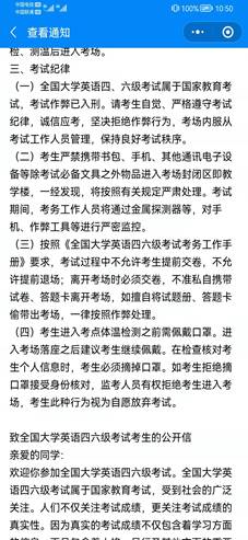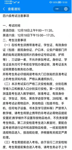 6月14日,beat365英国官方网站学生管理科通过“我在校园”平台,对全院同学发起四六级考试倡议书,包括四六级考试注意事项、致全国大学英语四六级考试考生的公开信等。(文、图/自律部 审核/李扬)