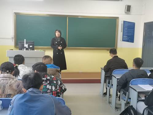 11月12日,学生管理科长李扬在南楼307教室组织进行四六级考前诚信教育主题班会暨翻译、写作提分指导课。