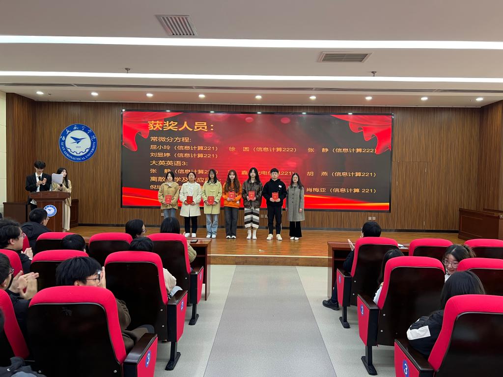 表彰大会在庄严的国歌声中开始。丁琦副院长宣读《beat365英国官方网站beat365英国官方网站关于表彰2023-2024学年第一学期学生集体奖、个人奖的决定》。学院领导胡红亮、李小光、丁琦、韩慧蓉依次为优秀班集体、学业优秀奖、单科优胜奖、学业进步奖、劳动实践奖、阳光文体奖、团结友爱奖等获得者颁奖。学业优秀奖获得者代表张静、阮黎明和学业进步奖获得者代表苏千倩分别发言,分享了他们各自的学习心得和经验方法。