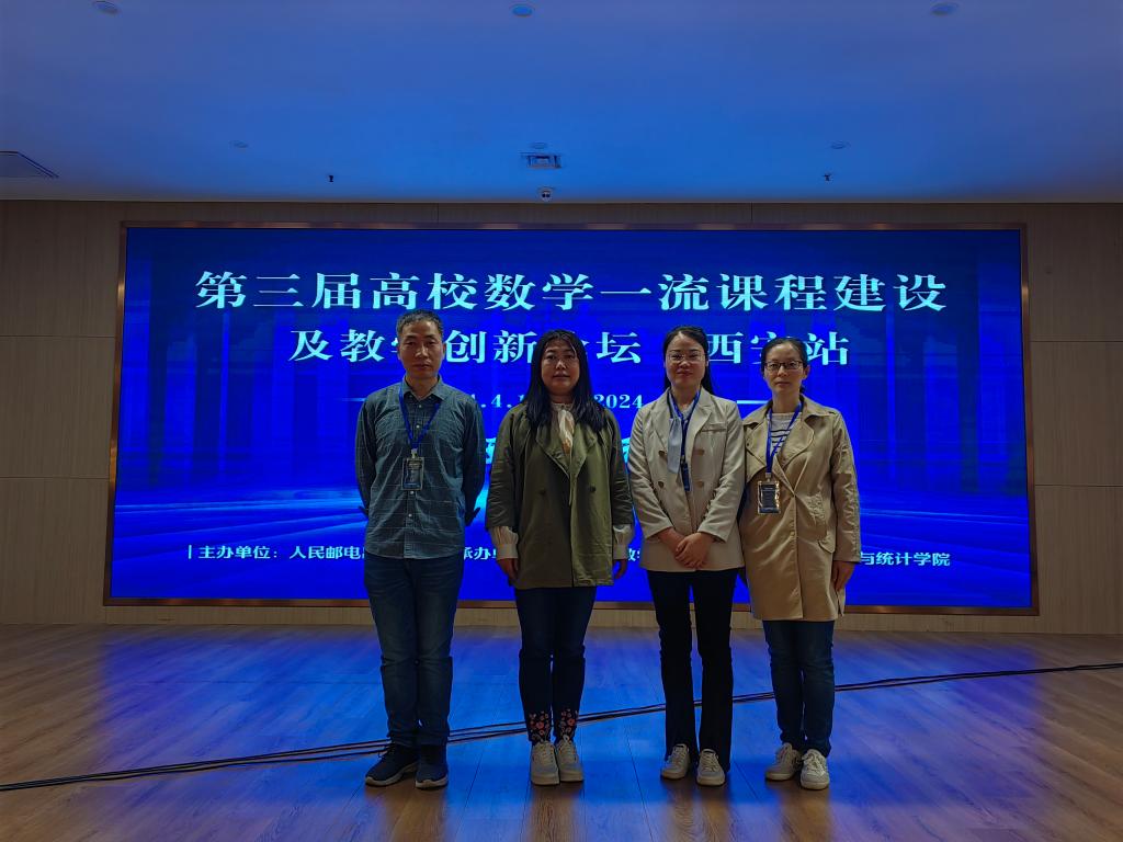 2024年4月13日,beat365英国官方网站教师应邀参加了由人民邮电出版社主办、山东大学数学学院和陕西师范大学数学与统计学院共同承办的第三届高校数学一流课程建设及教学创新论坛。beat365英国官方网站院长李小光、数学教研室主任周千以及校级一流课程负责人杨青、单文娟、王苗苗等教师参会。