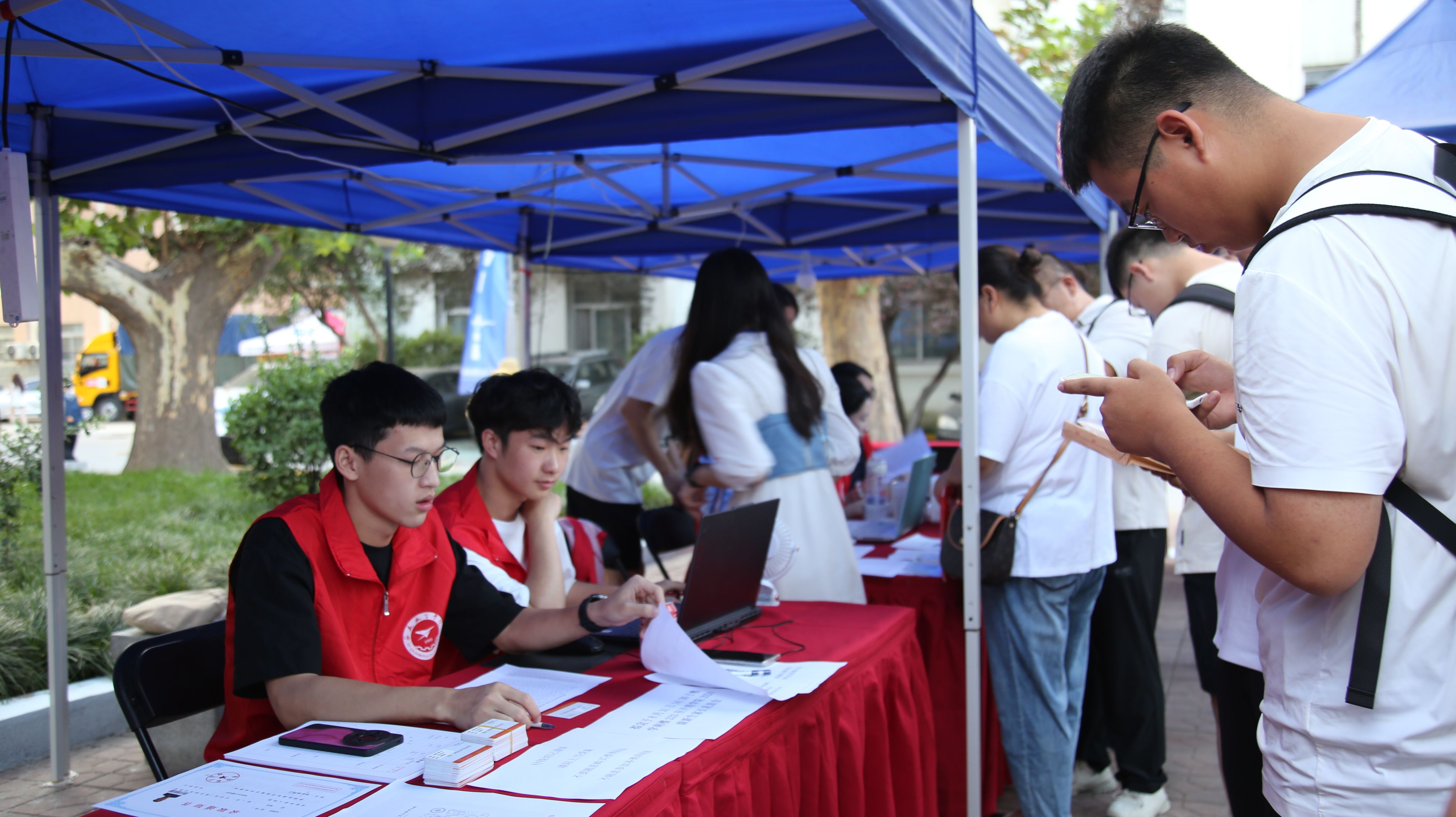 为使学生安全便捷地到校报到,beat365英国官方网站特派出志愿者团队在校园门口迎接新生。beat365英国官方网站参与迎新工作的志愿者热情周到地接送新生,接过他们的行囊,亲切问候;beat365英国官方网站党政领导和辅导员老师们都亲临现场,在学院报道点指导迎新工作,有条不紊地为新生及家长提供咨询服务,为其答疑解惑,办理入学手续,充分展现了beat365英国官方网站人积极向上、担当奉献的精神。