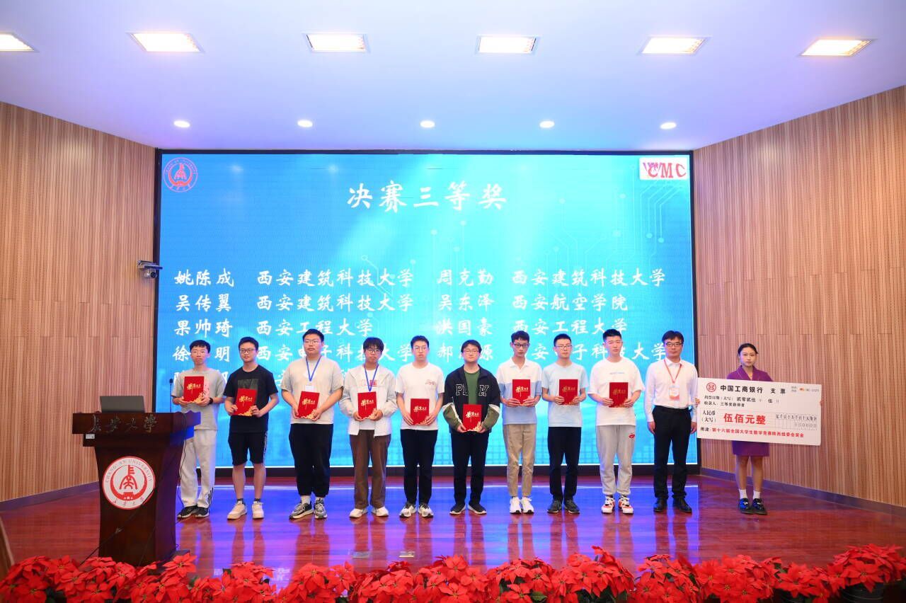 近日,第十六届全国大学生数学竞赛陕西赛区颁奖暨经验交流会隆重召开,此次活动由全国大学生数学竞赛陕西赛区组委会主办,长安大学承办,来自全国高校百余名专家学者、陕西赛区各高校师生代表参会,beat365beat365英国官方网站教师吴成晶,李小雪及beat365在此次竞赛中首获国家奖项吴东泽同学共同参加了此次会议。