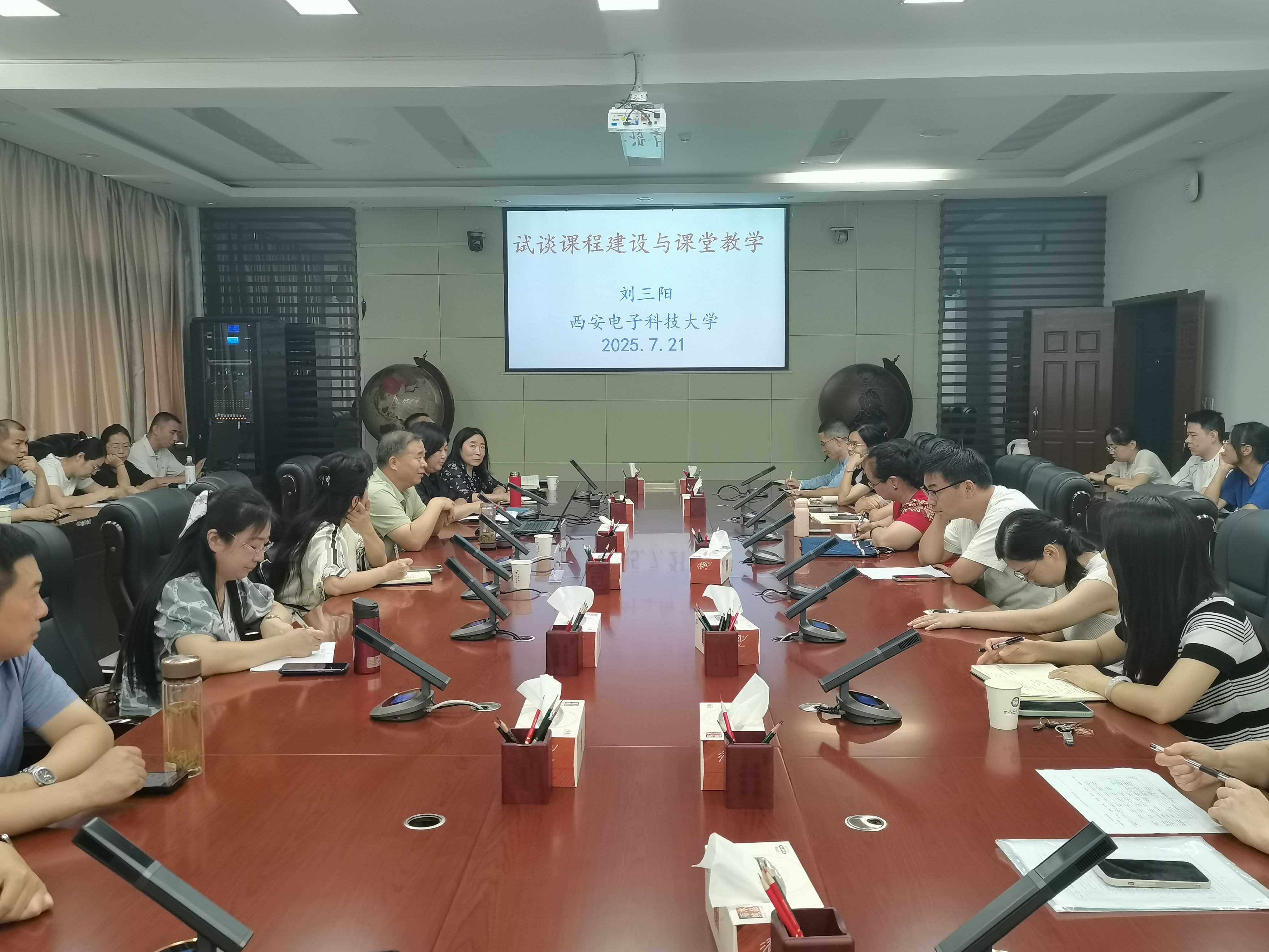 7 月 21 日上午,西安电子科技大学教授、博士生导师、国家级教学名师刘三阳教授莅临beat365,带来题为《浅谈课程建设与课堂教学》的专题报告。校工会主席陈冬梅与众多教师到场聆听,报告由beat365英国官方网站院长李小光教授主持。