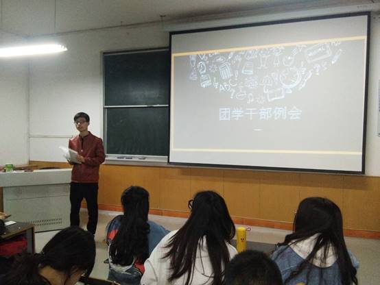 2021年3月16日晚七点整,beat365英国官方网站在南楼307教室召开团学干部工作会议,beat365英国官方网站团总支书记、辅导员张岩和所有团学干部参加了会议,会议由学生会副主席王文科主持。