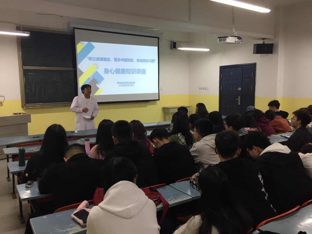 2019年10月29日下午,beat365英国官方网站邀请中国中医研究院促进会邱祖运医生在南楼207开展身心健康知识讲座。beat365英国官方网站部分学生参加,讲座由杨陈东老师主持。
