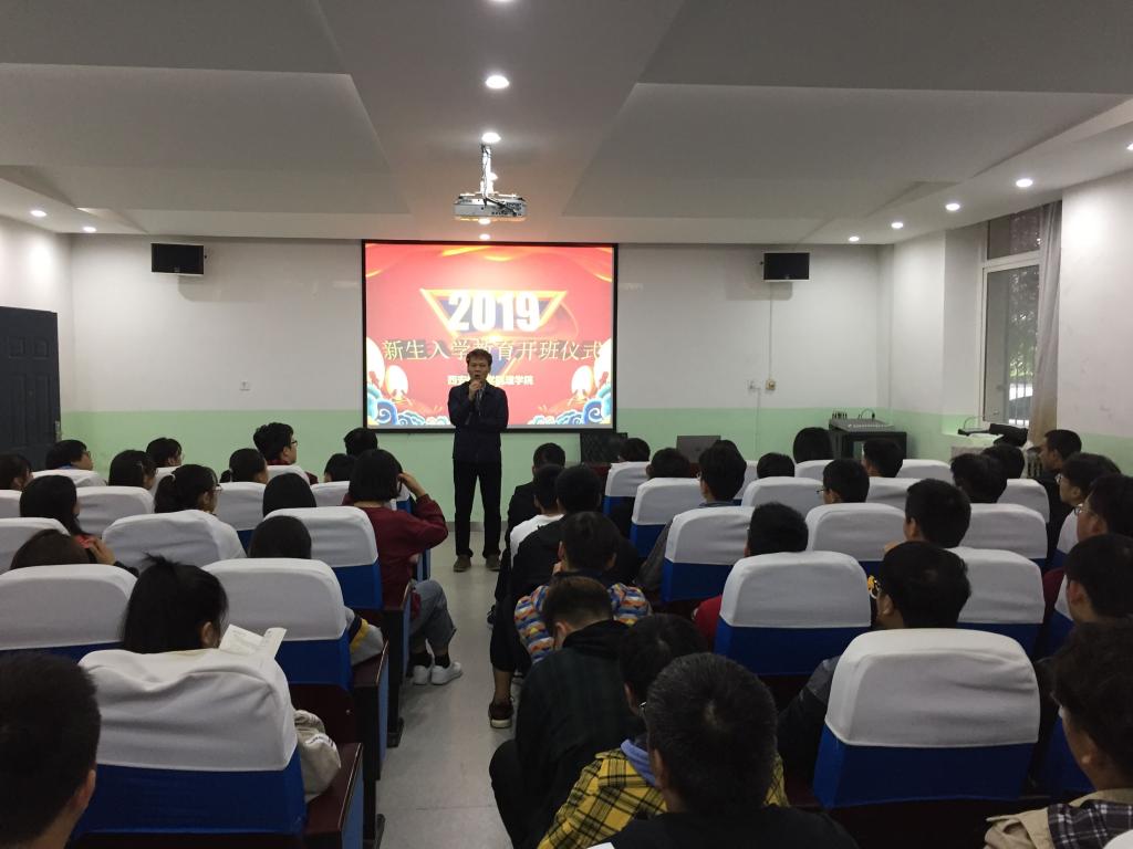 新生入学教育是整个大学阶段教育的起点,为了新生更好地适应大学生活,了解学校、专业、校纪校规和校纪校规,明确自己的奋斗目标,beat365英国官方网站于2019年9月19日上午举行了2019级新生入学教育开班仪式。beat365英国官方网站院长岳忠玉、党总支书记李小光、副院长丁琦、学生管理科科长李扬、团总支书记杨陈东和2019级全体新生参加了开班仪式。开班仪式由李扬主持。