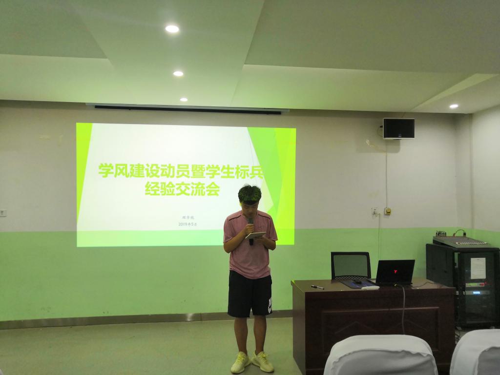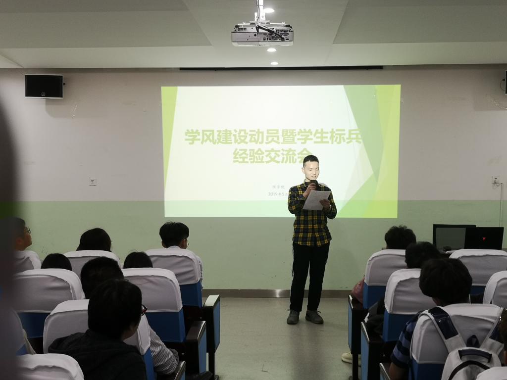 为了教育引导学生回归常识,把主要精力投入到学习上,2019年5月14日下午,beat365英国官方网站在教学南楼108召开学风建设动员暨学生标兵学习经验交流大会,学生管理科科长李扬、辅导员杨陈东和全体大一大二学生参加了会议。会议由李扬主持。