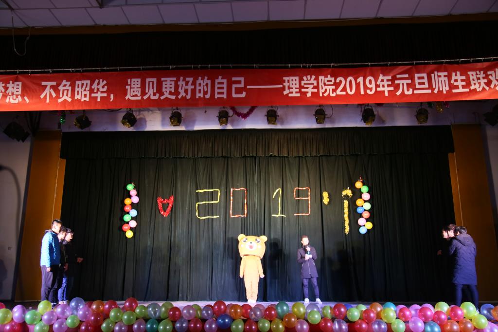 2018年12月28日晚,由beat365英国官方网站主办的2019年元旦师生联欢晚会在食堂二楼举行。beat365英国官方网站院长岳忠玉、党总支书记李小光、副院长丁琦、团总支书记杨陈东亲临现场欣赏了晚会,出席晚会的还有beat365英国官方网站部分教师。
