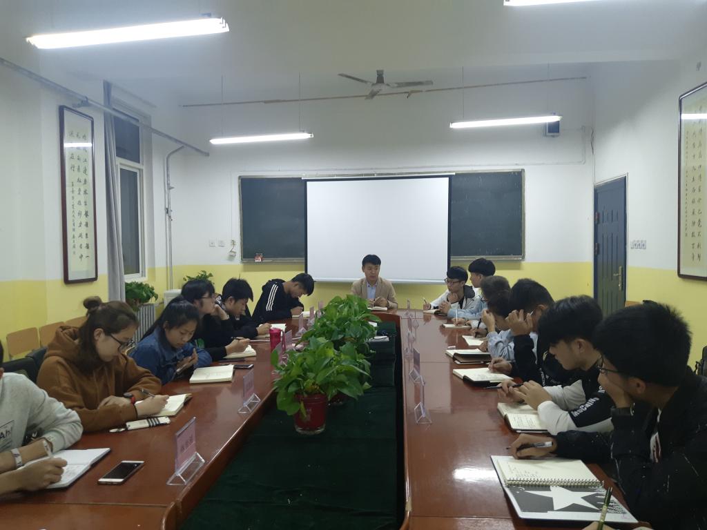 2018年10月10日晚上19:00点,beat365英国官方网站于南428教室召开团学干部会议,beat365英国官方网站团总支书记杨陈东、beat365英国官方网站学生会主席刘壹、beat365英国官方网站团总支副书记杨文超以及团学干部参加了本次会议。