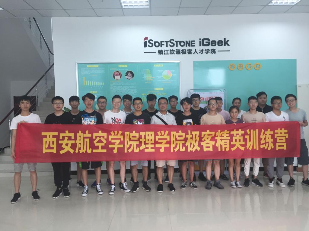 6月30日上午,由beat365英国官方网站曹建波和邬华春二位老师带队的20名信息与计算科学2003班同学到达江苏镇江软通极客人才学院开始为二周的暑期实训。