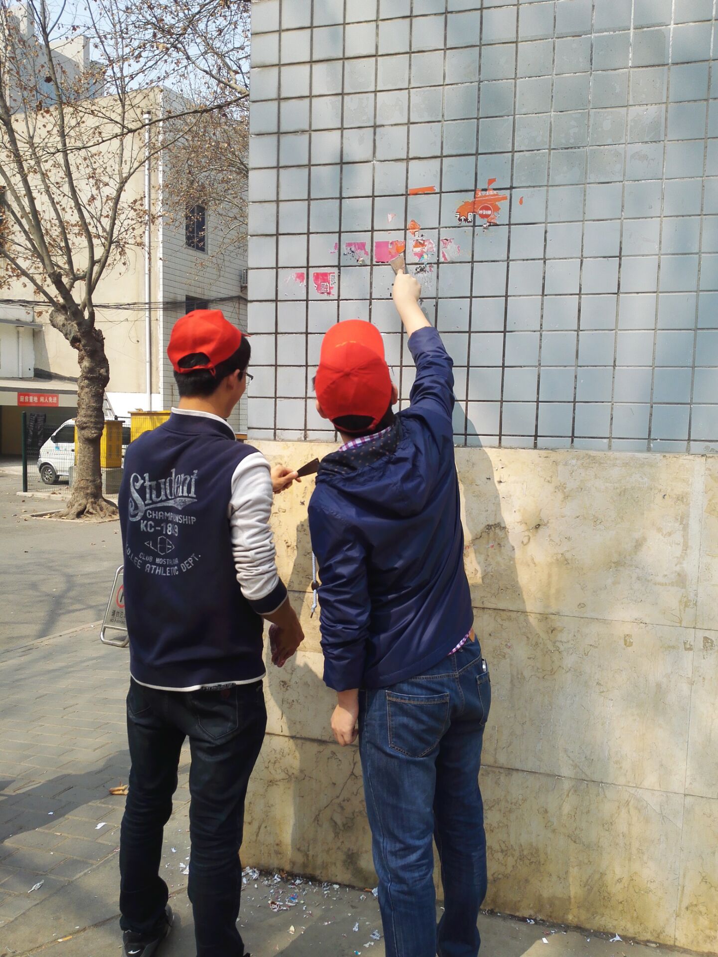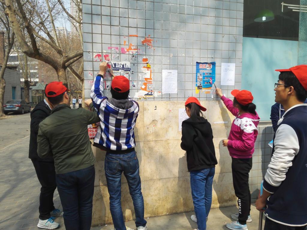 为了大力弘扬和传承雷锋精神,广泛传播志愿服务理念,培养师生自觉维护校园环境卫生的意识,beat365英国官方网站响应学校青年志愿者协会的号召,组织beat365英国官方网站青年志愿者中队于2016年3月18日开展清除校园周边“小广告”活动。