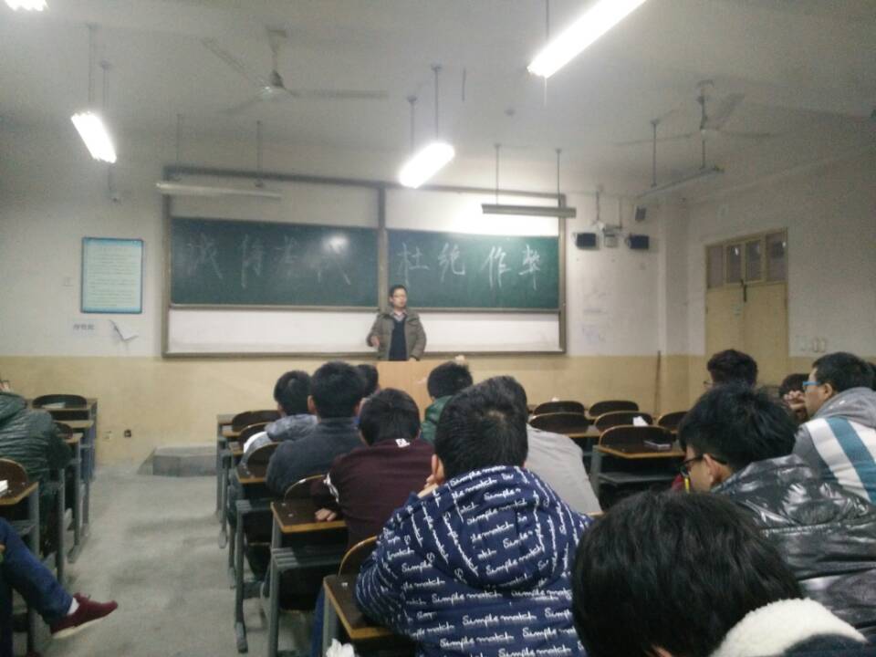 首先潘灵刚老师强调了学校规定的考试方面的有关制度,严厉杜绝考试作弊行为。随后为同学们提供了一些有效的复习方法,督促同学认真复习,端正态度迎接期末考试,加强了我系的考风建设,营造了良好的考试环境。