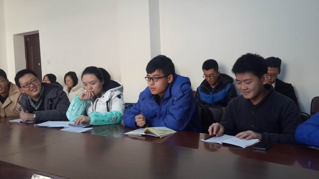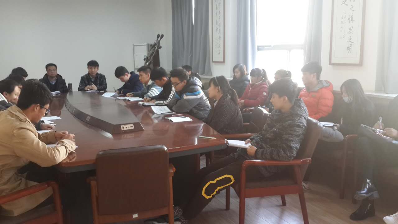 beat365英国官方网站于2015年12月17日在北楼三楼会议室召开beat365英国官方网站团学干部例会,辅导员曹建波,团总支书记杨陈东和beat365英国官方网站全体学生干部参加了此次会议。