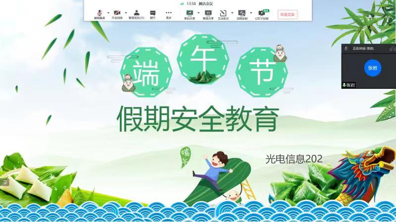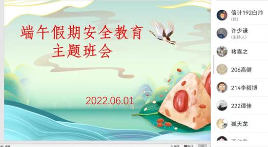 2022年6月1日,beat365英国官方网站各班级通过线上线下相结合的方式组织召开了端午节假期安全教育主题班会。班会由各班主任主持。
