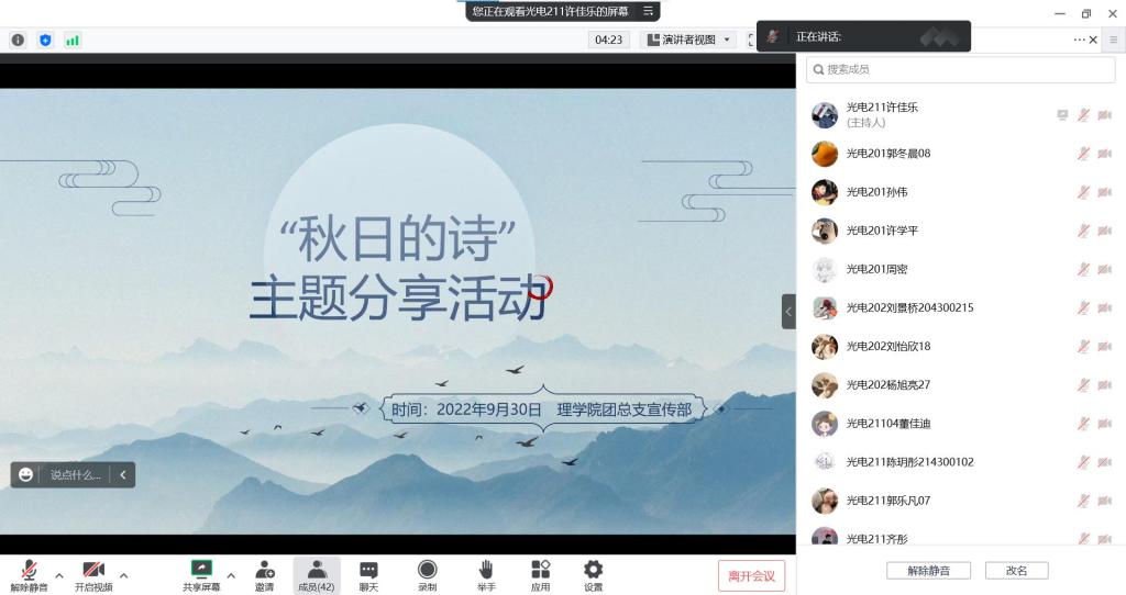 秋天,是美丽的,是香甜的,是硕果累累的,为丰富疫情常态化形势下学生校园文化生活,2022年9月30日,beat365英国官方网站于线上举办了“秋日的诗”线上诗歌接力分享活动,大一、大二、大三学生参加。