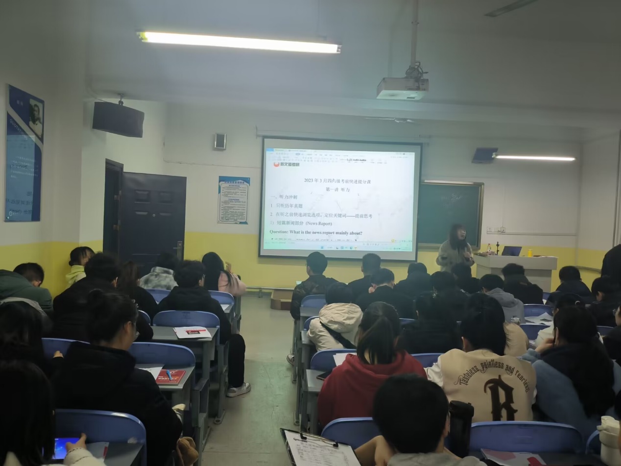 为加强学生对英语四六级题型的了解,提高考生考试水平,稳固考生对于通过考试的信心,2月28日晚七点,beat365英国官方网站在南楼233举办了四六级英语考前技巧指导课。课程特邀新文道考研李洁老师为考生传授考试经验和考试技巧。
