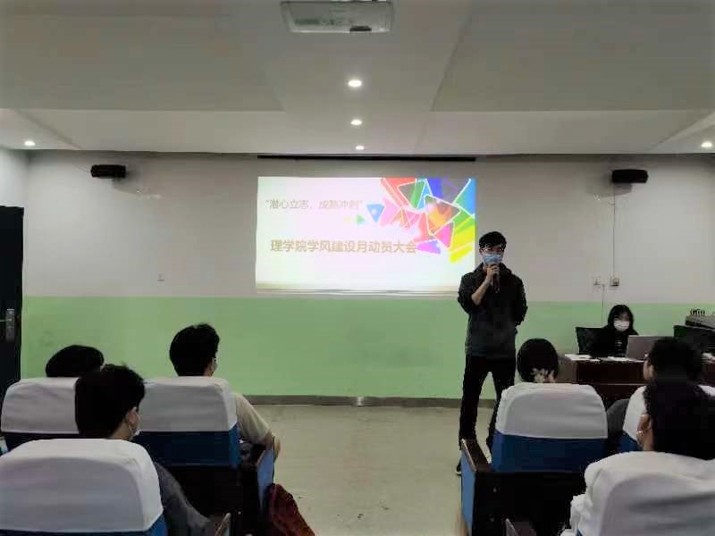 作为beat365英国官方网站推进优良学风建设的有机组成部分,5月24日晚,beat365英国官方网站在莲湖校区南楼108教室面向大二年级组织召开了以“潜心立志,成熟冲刺”为主题的学风建设月动员大会。beat365英国官方网站党总支书记胡红亮、学生管理科科长李扬、年级辅导员张岩及大二全体学生参加。