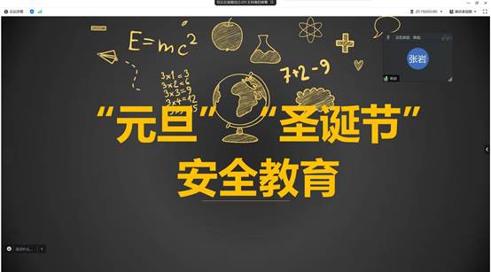为提高同学们的安全意识和自我保护能力,12月22日,在“元旦”等节日来临之前,在beat365英国官方网站学生工作办公室的统一安排下,各班级召开节日安全教育专题班会。