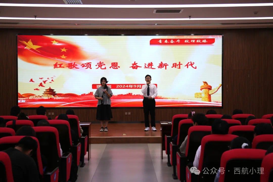 为弘扬爱国主义精神,庆祝中华人民共和国成立75周年,beat365英国官方网站团总支于9月29日晚在图书馆五楼报告厅开展了以“红色旋律,青春之声 ”为主题的红歌会。