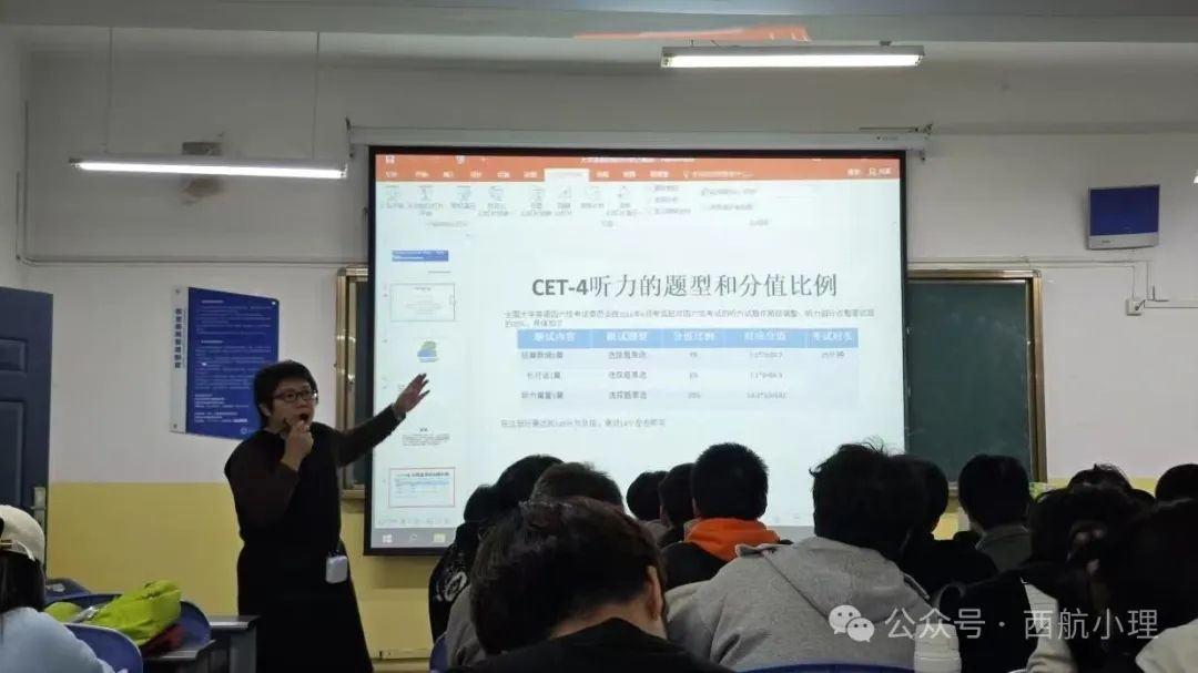 为了向四级考生传授有效的听力技巧和方法,提升考生的听力能力,针对性提高听力成绩,beat365英国官方网站于2024年11月13日在南楼233举办英语四级听力考前指导。