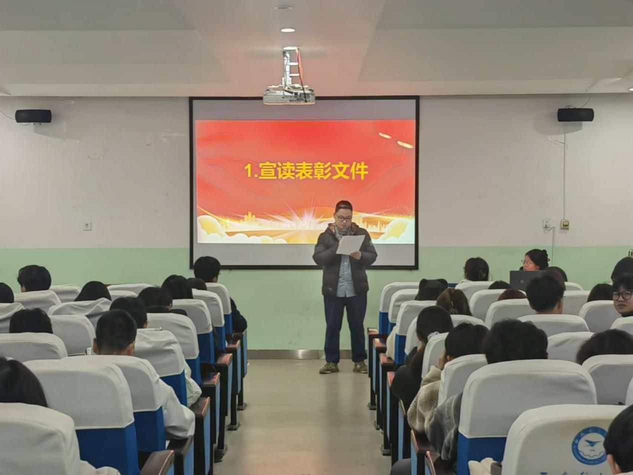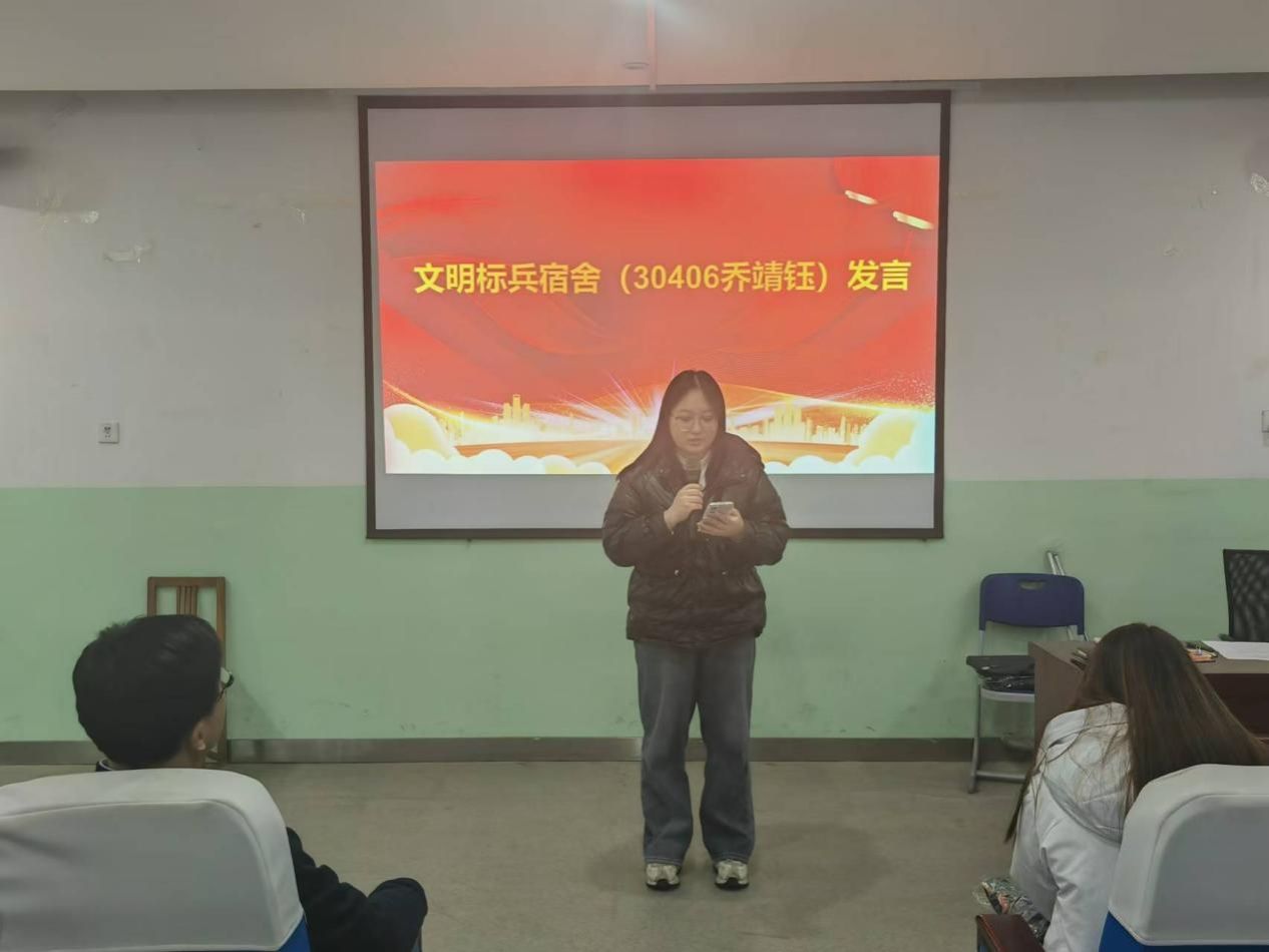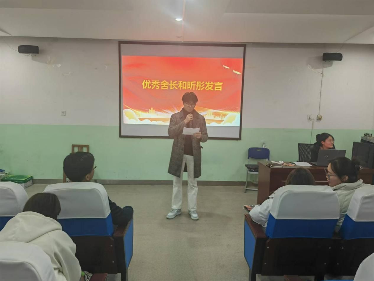 会议伊始,王向阳宣读了表彰文件,共包含“文明示范教室”“学风标兵宿舍”“文明标兵宿舍”“党员示范宿舍”“文明宿舍”“优秀舍长”“优秀宿舍安全员”等七个奖项。随后,胡红亮为获奖集体和个人颁奖。文明标兵宿舍代表乔靖钰和优秀舍长和昕彤分别作交流发言,分享了他们在宿舍建设中的经验和心得。