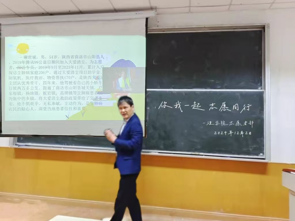 在国际志愿者日来临之际,beat365英国官方网站团总支于12月4日在南308教室举办“学志愿三秦楷模,扬奉献时代新风”活动,旨在弘扬志愿服务精神,让更多同学了解志愿服务的意义与价值,激发同学们参与志愿服务的热情,增强社会责任感。活动有幸邀请到了关工委岳忠玉老师,结合自身经历为同学们讲述关心下一代成长贡献力量的志愿事迹。