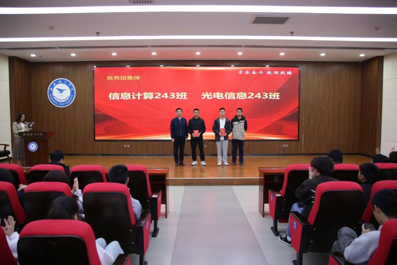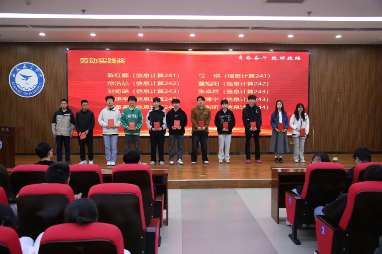 学院团总支书记王向阳宣读了表彰名单,共有2个班集体和60人荣获各类荣誉称号,涵盖2024-2025学年第一学期大一年级学生在集体建设、学业发展、劳动实践、阳光文体和团结友爱等方面表现优秀的集体和个人,每一份荣誉都凝聚着获奖集体和个人的辛勤付出与不懈努力。