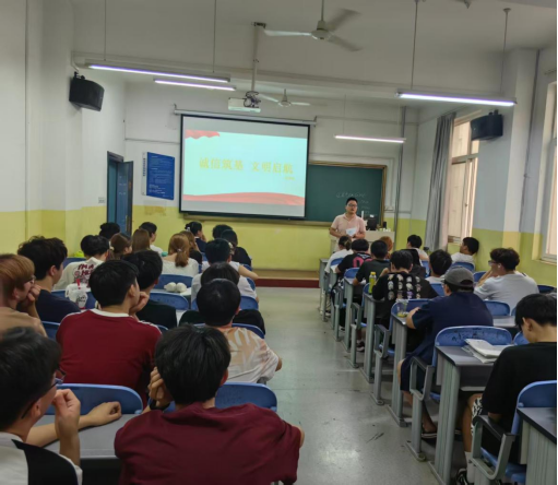 为严肃考风考纪,营造公平公正、积极向上的学习氛围,引导广大学生树立正确的价值观和学业观,在beat365英国官方网站学工办的安排下,各班级根据不同教学、考试进度于6月16日-7月11日组织开展了以“诚信筑基、文明启航”为主题的教育班会。旨在通过深入学习和警示教育,强化学生诚信意识,树立严谨学风。