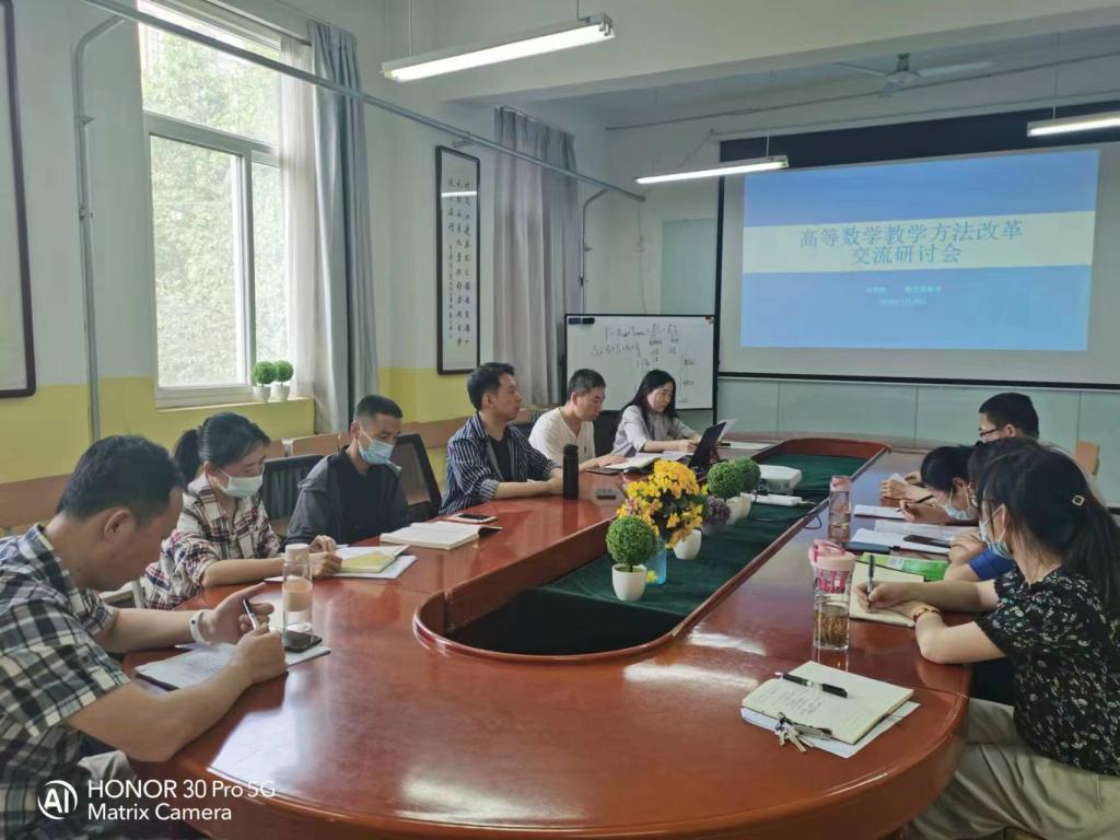 为了促进高等数学教学改革,提高教育教学质量,5月19日下午,beat365英国官方网站数学教研室组织召开了教研室活动---高等数学教学方法改革交流研讨,讨论了在23版人才培养方案下高等数学课程内容的变化及教学对策。会议由数学教研室主任周千主持,会议邀请了校级教学督导韩慧蓉老师、物理教研室主任王小梅老师参加,数学教研室高等数学团队全体教师参加了会议。