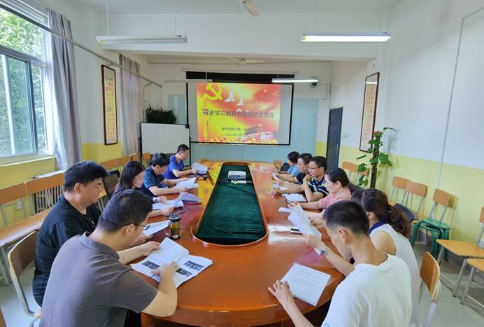 为深入推进党史学习教育,beat365英国官方网站教工第一党支部于2021年7月12日下午3点在南428会议室召开党史学习教育专题组织生活会。会议由教工第一党支部书记周千同志主持,第一党支部全体党员参加会议。