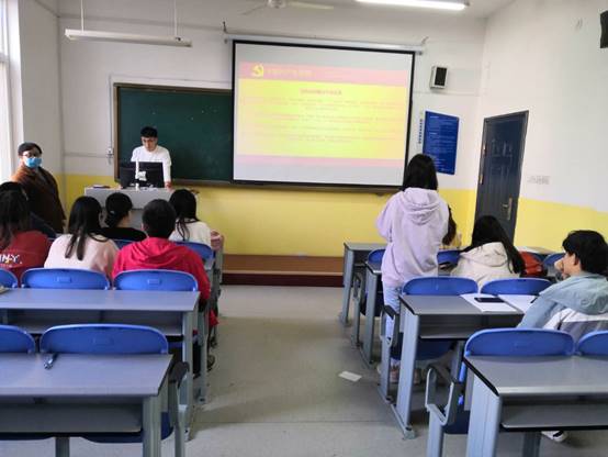 首先,刘逸轩带领同学们集中学习了《党章》,将同学们政治思想及其行动进行统一,明确了同学们必须遵守的根本行为规范。接着,李扬老师结合习近平总书记关于教育的重要论述让同学们开展了讨论,在讨论中,同学们再一次深刻认识到了习近平总书记关于教育的重要论述的意义。最后,李扬老师结合了疫情防控与同学们讨论了如何发展党员的模范带头作用,使同学们再次认识到党员在面对重大困难的时候必须要有模范带头作用,这样才能更好地为人民群众服务。(文/樊招敏 图/张宏飞)