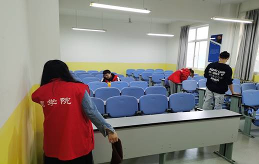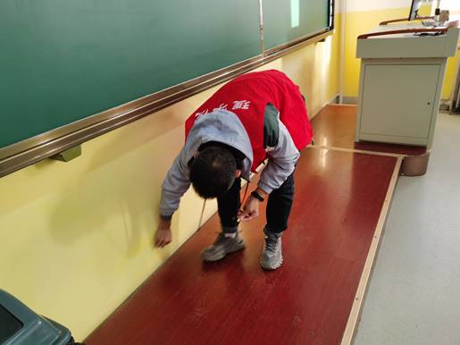 讨论完毕后,党支部书记李扬老师组织全体党员和积极分子开展志愿活动。同学们一起打扫了南楼二楼和四楼的公共区域,南楼三楼的所有教室以及男生一号公寓一二三楼公共区域的卫生。同学们认真的打扫了教室墙壁教室座椅以及公共区域的卫生,将教室桌椅上的顽固污渍全部清除干净。志愿活动增强了学生的劳动观念,更增强我院同学的劳动意识和团结协作意识,锻炼了同学的意志品格,让我们懂得了应该珍惜每个人的劳动成果,尊重别人的劳动。并把这种观念和思想带到今后的学习和工作当中,养成良好地学习习惯和优良作风。