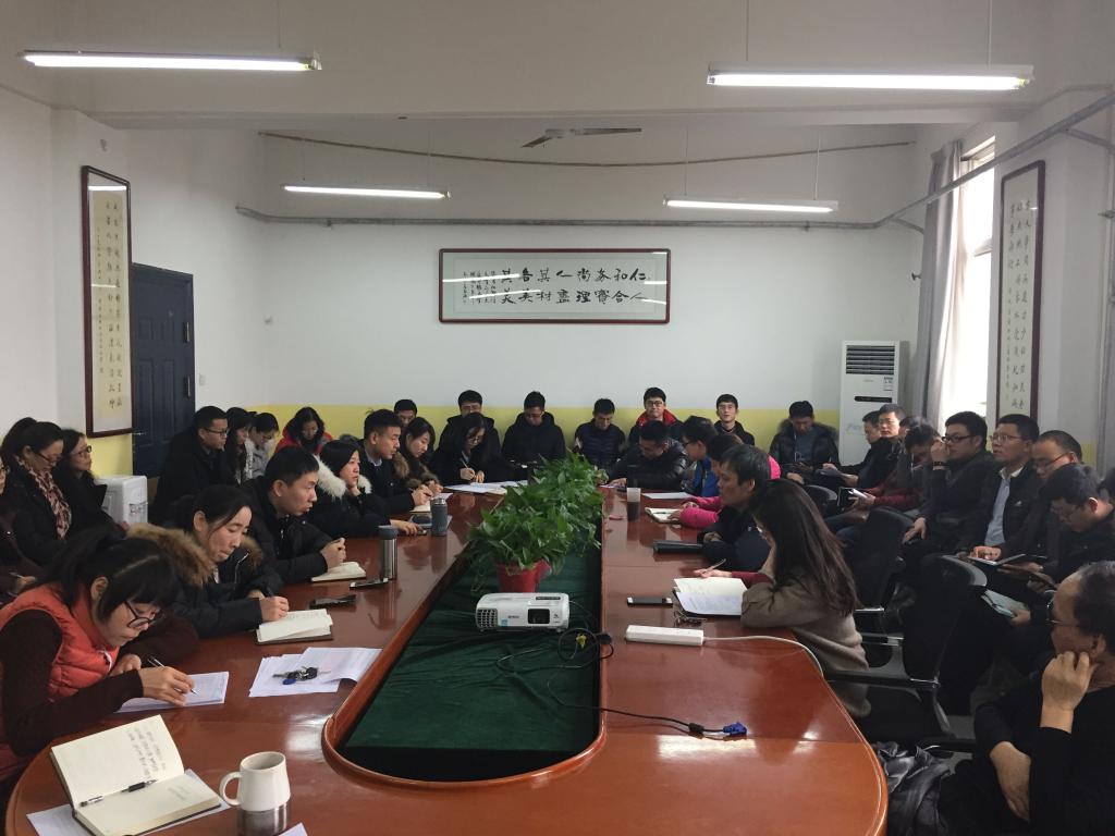 2019年1月18日下午,beat365英国官方网站在南楼428会议室召开2018年度工作总结大会,beat365英国官方网站院长岳忠玉、党总支书记李小光、副院长丁琦及beat365英国官方网站全体教职工参加了会议。会议由岳忠玉主持。