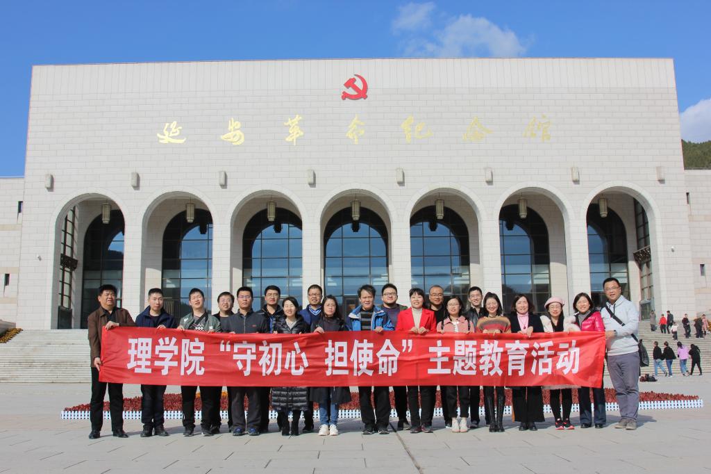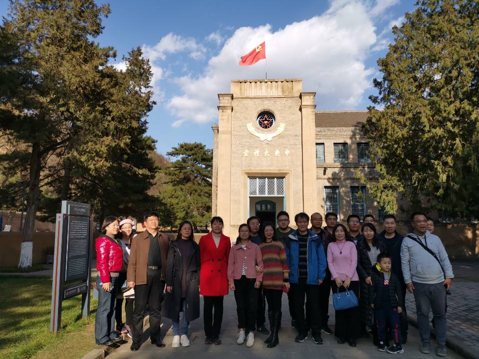 为深入学习贯彻习近平新时代中国特色社会主义思想及十九大精神,传承和弘扬延安精神,深刻缅怀革命先烈,全面提升教师党员的政治素养和思想水平,2019年11月2日-11月3日,beat365英国官方网站院长岳忠玉、副院长丁琦及17名beat365英国官方网站教职工党员赴延安开展“守初心、担使命”主题教育活动,实地学习延安精神,接受革命传统教育,进一步提升党性修养、锤炼坚强党性。