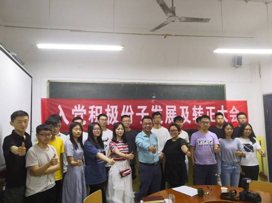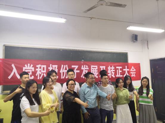 本次会议由学生党支部书记曹建波老师主持,会议开始,首先由曹建波老师宣布开会,汇报出席会议的正式党员,会议议题以及大会要求。之后11名入党积极分子宣读《入党志愿书》以及需要向党组织说明的其他问题,由入党介绍人介绍发展对象的主要情况和对其进行培养教育情况,并对其能否入党表明意见。