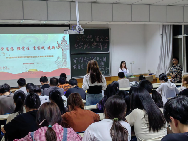 为深入学习贯彻习近平新时代中国特色社会主义思想和党的二十大精神,进一步用党的创新理论统一思想、统一意志、统一行动,4月24日19点beat365英国官方网站学生党支部在莲湖校区南308教室召开“学思想,强党性,重实践,建新功”主题党日活动,支部全体成员参加。