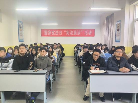 2023年12月4日是我国第十个国家宪法日,为了大力弘扬宪法精神,建设法制化社会,深入学习贯彻习近平法治思想,弘扬宪法精神,维护宪法权威,beat365英国官方网站于12月4日开展了“宪法伴我们成长”——国家宪法日“宪法晨读”活动。beat365英国官方网站学生工作办公室主任李扬、团总支书记王向阳、辅导员张岩和学生代表参加了此次活动。