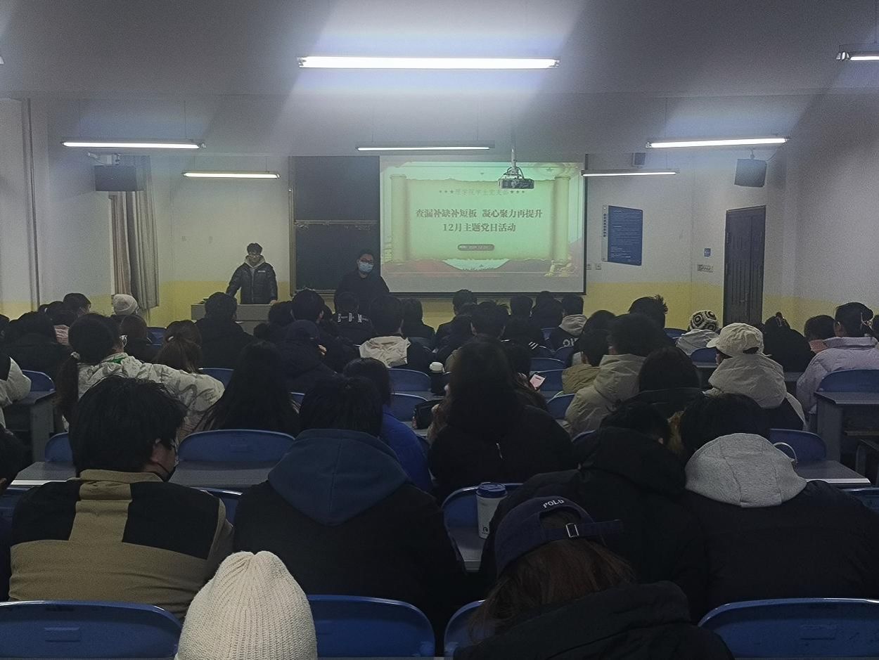 为深入学习贯彻党的二十大精神和二十届三中全会精神,进一步强化学生党员责任意识,提升学生党组织凝聚力和战斗力,beat365英国官方网站学生党支部于2024年12月30日组织开展了“查漏补缺补短板,凝心聚力再提升”主题党日暨党课活动。