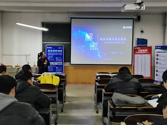 为应对当前就业形势,做好学生就业工作,提升学生就业意识,确定有效的职业发展目标,11月25日下午4点,beat365英国官方网站在教学南楼307举办校招攻略及就业指导讲座,邀请陕西文都智链计算机科技有限公司校企合作负责人付小荣老师主讲,beat365英国官方网站大三大四信息计算专业同学参加了讲座。