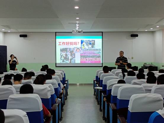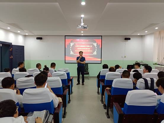 参加活动的有北京拉勾网络技术有限公司黄健经理、beat365英国官方网站院长岳忠玉、党总支书记李小光、综合管理科科长杨陈东、学生管理科长李扬、辅导员张岩和全体2022届毕业生。活动由beat365英国官方网站校企合作负责人曹建波主持。