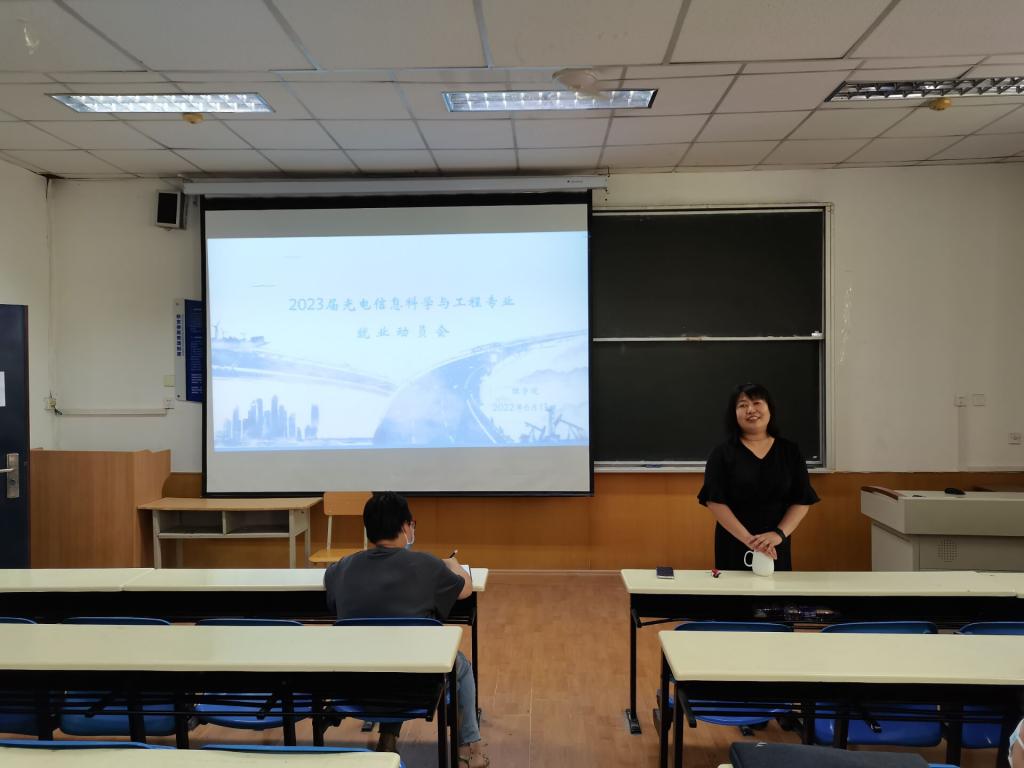 为全面推进落实我院毕业生就业工作,为毕业生提供全面的就业服务,我院于2022年6月13日在中午十二点、下午一点于教学南楼308教室分别召开了2023届信息与计算科学、光电信息科学与工程两个专业的毕业生就业动员大会。参加此次大会的有beat365英国官方网站党总支书记李小光、学生管理科科长李杨及2023届全体学生。