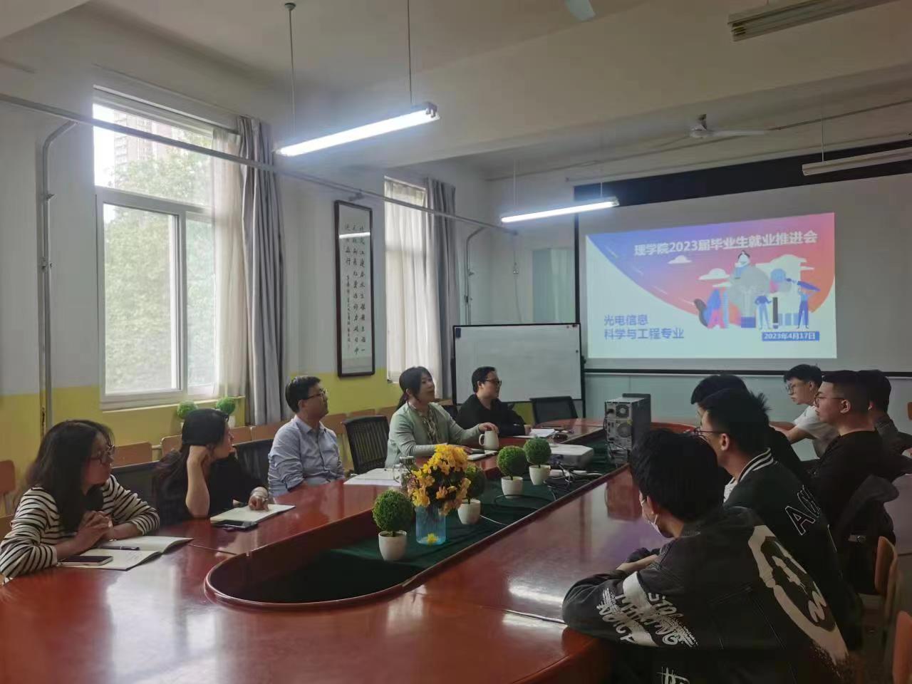 为持续推进2023届毕业生充分就业、帮助未就业学生高质量就业,4月12日和4月17日下午4点,beat365英国官方网站在教学南楼428会议室分别召开信息与计算科学专业和光电信息科学与工程专业2023届未就业学生就业工作推进会。beat365英国官方网站党总支书记胡红亮、院长李小光、教研室主任王小梅、周千、专业负责人张惠玲、王妙和学生管理科科长李扬、毕业班辅导员、班主任及2019级未就业学生参加了此次会议。会议由李扬主持。