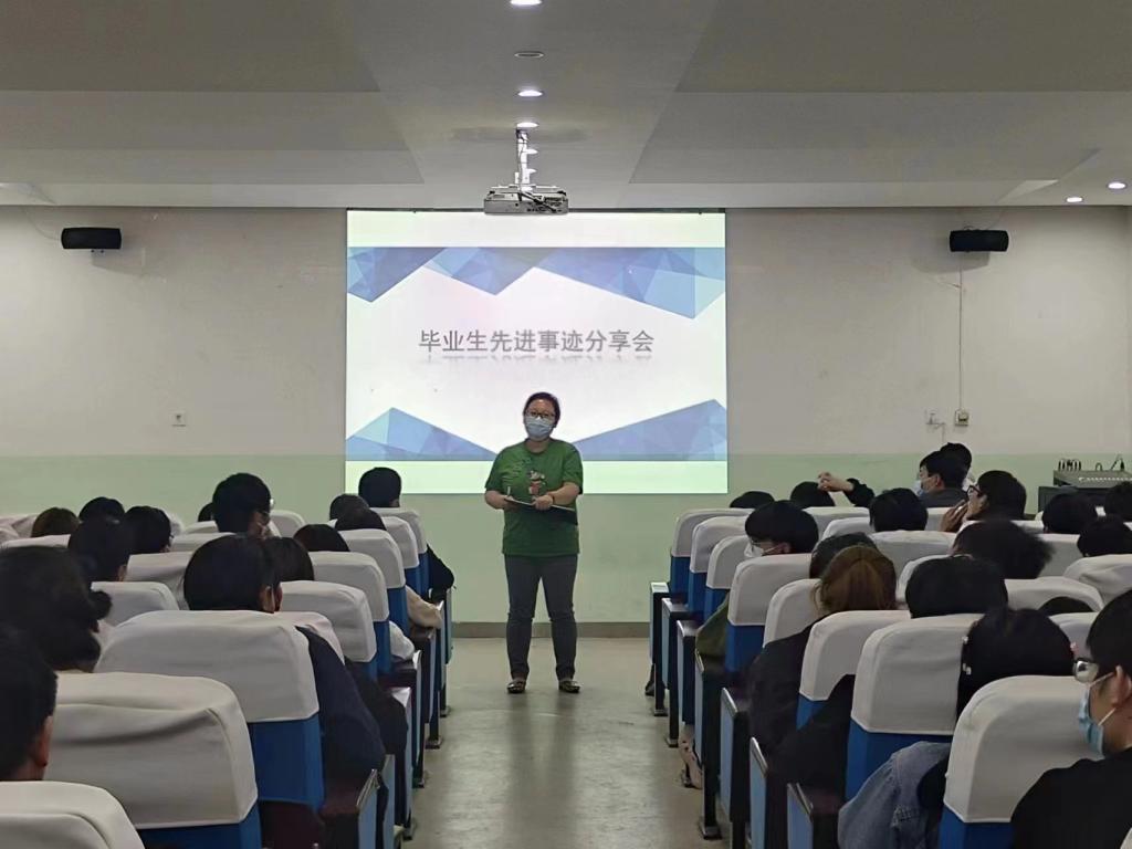 为发挥优秀毕业生的榜样引领作用,帮助大三同学了解当前就业形势,树立正确的就业观,5月25日晚,beat365英国官方网站在莲湖校区南楼108教室召开了毕业生先进事迹分享会。beat365英国官方网站党总支书记胡红亮,学生管理科科长李扬,辅导员张岩及大三全体学生参加。