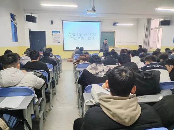 为增强学生对优质企业的了解,提升专业品牌,有效实现教学与实践的有机结合,岗位实习与就业的良好对接。12月5日到12日,beat365英国官方网站开展了光电信息专业“订单班”动员,beat365英国官方网站校企合作负责人曹建波、光电信息科学与工程专业负责人王妙、辅导员张岩及2021级光电信息专业全体学生参加。