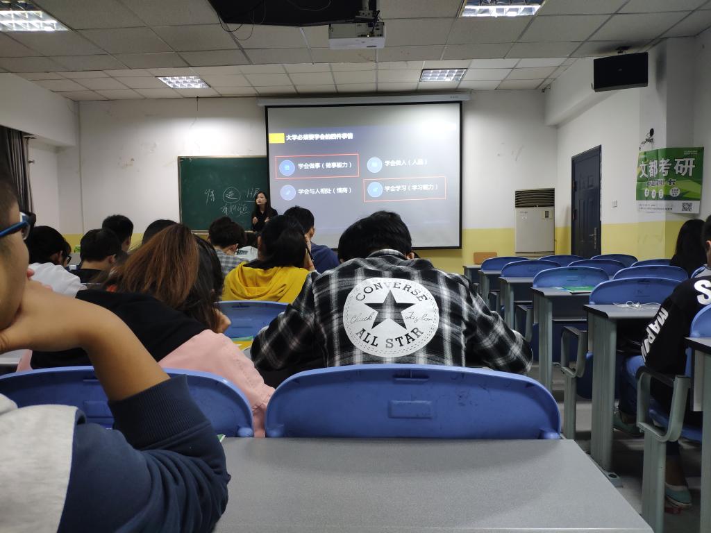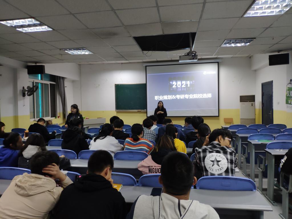吴妮老师首先分析了大学四年不同的阶段学生们的心理,然后总结了大学四年必须要做的四件事,并且从人力资源面试方面分析了其重要性。接着引入毕业后可能的选择,考研是我们专业大部分本科毕业生的选择,老师也说明了考研的重要性。接着老师从学校、专业等方面进行了分析,对各高校、各专业的考试方向、内容、分数等方面进行讲解,让同学们深入了解考研的意义与益处。在简短的时间里让同学们受益匪浅。