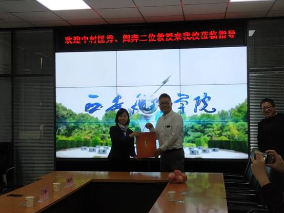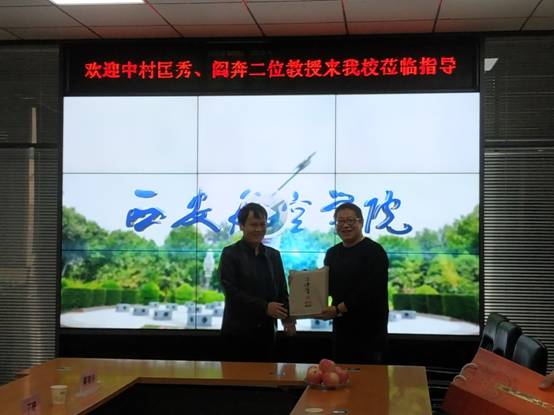 首先,金文、岳忠玉对中村匡秀、阎奔教授的远道而来表示热烈欢迎,并代表学校赠送具有中国传统文化特色的剪纸礼品。